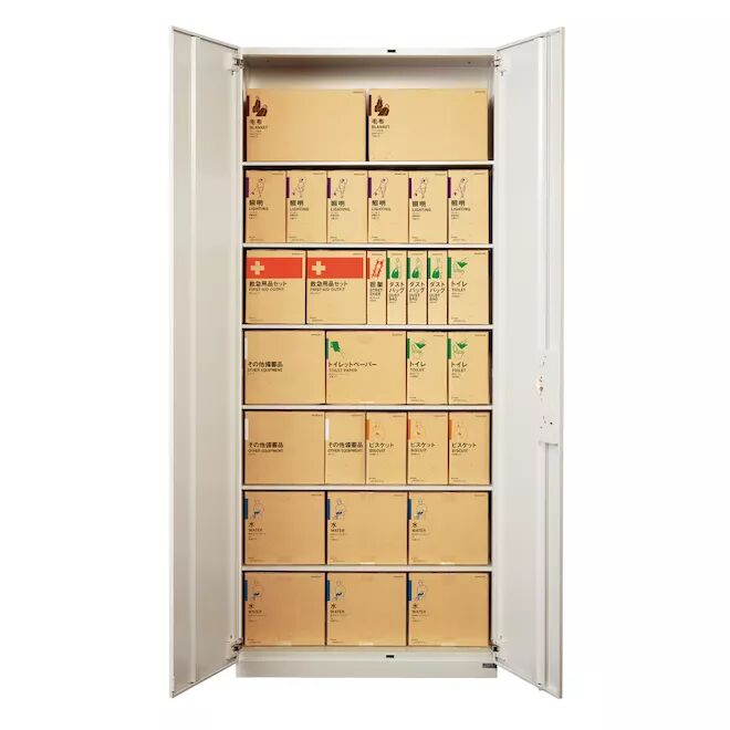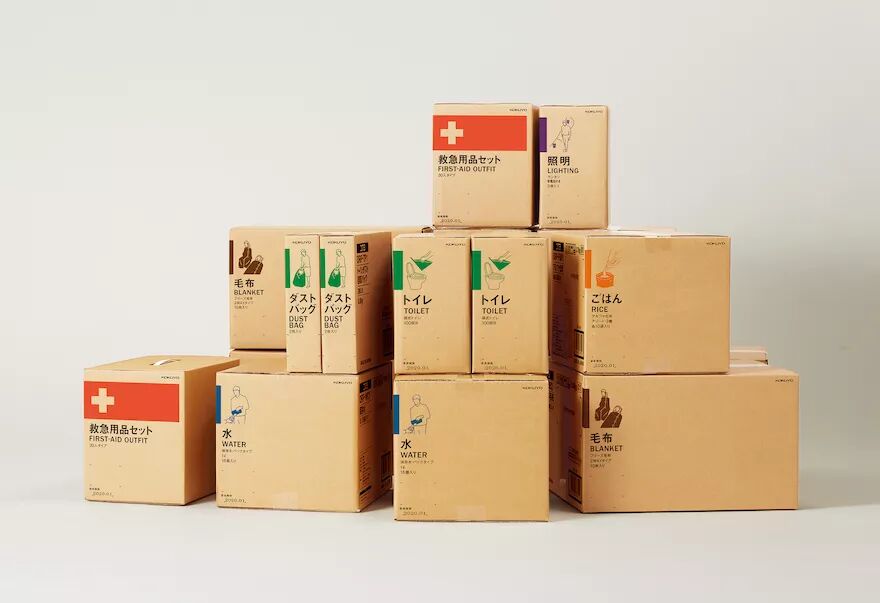 有预测说是日本近年来会有大地震发生,而借助东日本大地震时有10万人滞留在办公室,而办公室储备不充分的经验,koyuko开发了办公室用防灾储备系统「PARTS-FIT」。通过对办公室的研究以及必要用品的合算,它给予了不同的防灾必要用品以不同的寸法,以让他们能模块化地排放到家具中,节省空间。为了方便男女老少、外国人使用,包装箱上具有高识别的图形,即使初见者也能迅速识别。