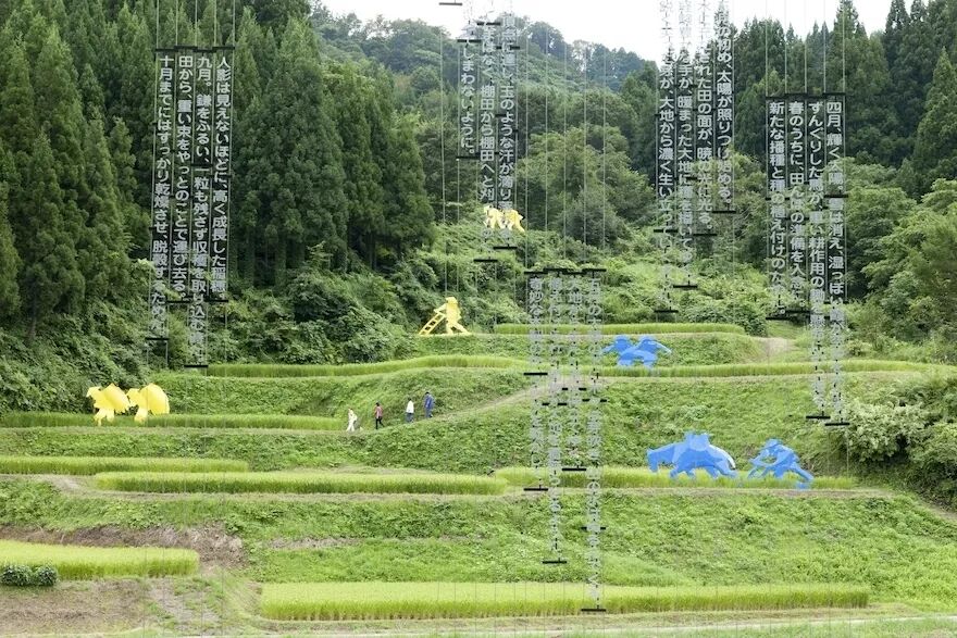 “越后妻有大地艺术祭(节)Echigo-Tsumari Art Triennial”,是由日本新潟县十日町市政府主办,著名艺术策展大师北川富朗先生发起并担任艺术总监,以越后妻有760平方公里土地为舞台的,集合了世界上顶尖艺术家的作品,堪称“没有屋顶的美术馆”,是当今世界上规模最大、水准最高、影响力最广泛的国际性户外艺术节。三年一届的“大地艺术节”创始于2000 年,迄今已经18个年头,今年将迎来第七届。