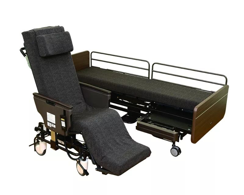 这是一台把电动护理床和全躺式轮椅完美融合的新型护理机器人。它的一半可变身为可调角度的轮椅,能让一个护工独自操作,轻松、安全地移动护理对象 “由床到椅” ,彻底改变了传统护理床需要两人以上抬、举护理对象的方式。即使诸如全身瘫痪等重症护理对象也很容易离床,并大大减少因移动护理对象可能造成的伤痛,不仅有效提升了护理对象的生活质量,也大大降低了护理者的工作强度。