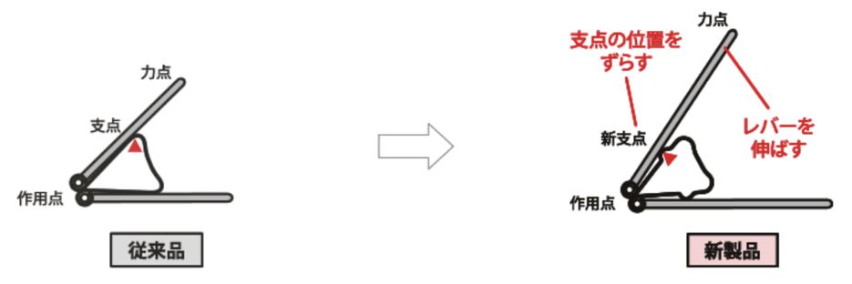 夹子是整理文件常用的工具,但是我们在使用它们时比较费力,时常出现夹子弹飞出去、手指疼痛的情况等。而AIR KARU夹利用杠杆原理,改变支点的位置、加长杆子的方式,使得力最大能省50%。并改变了钢丝的形状,减轻手的疼痛感。各size省力率:大:50%,中:40%,小:30%。