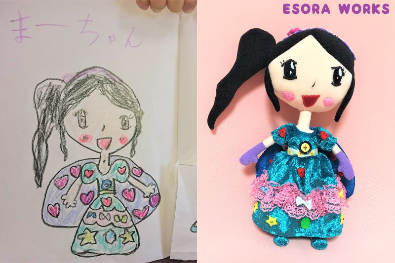 孩子们的涂鸦画展示了他们无穷的想象力,ESORA WORKS 将他们的这些画转化为3D的布娃娃,让孩子们能够切身地去拥抱自己创造出的‘人物们’。并没有固定模式化的设计可依据,每一个娃娃都需要活用孩子们的画来进行制作。