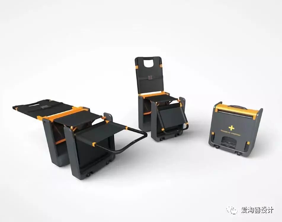 紧急轮椅探索一种有效的急救措施,可以用来运送生病或受伤的火车乘客。这在高峰时段或假日旺季特别有用,因为这类事件发生的几率较高。使用时,按下“push”按钮,抬起一个把手,把手会变成轮椅的后部,然后将装置的主体展开,形成一个座椅结构。这个压实装置现在变成了轮椅。锁定点以保护整个结构。在存放轮椅时,身体和椅背会被折叠成一个紧凑的盒子。轮椅由镁合金、高强度工厂塑料和阻燃织物制成。