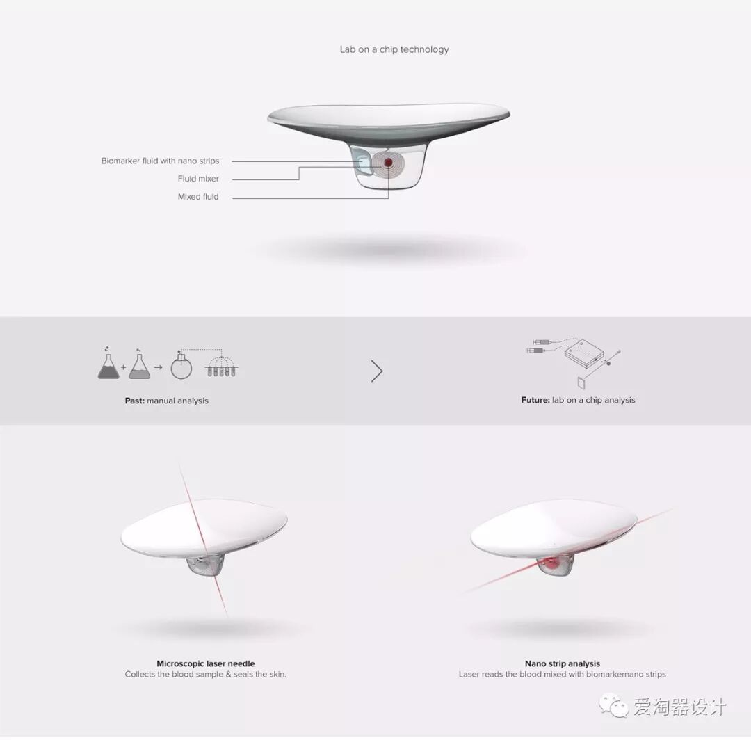 此款空气监测器摆脱了传统环境监测硬件冰冷的设备感,并赋予了它如同首饰般的精致、优雅和便携。他没有多余的开关和显示,轻轻敲击外壳,LED灯亮起即提示当前环境状况,同时将更多数据通过APP传送到手机。优化了作为空气检测设备对于用户来说的使用体验及感受。