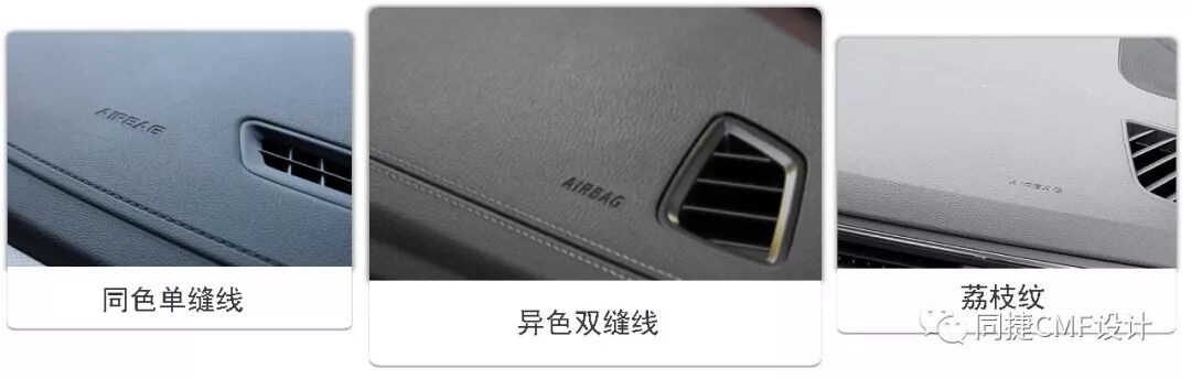 在表面的处理上——荔枝纹相较仿皮纹赋予仪表板更逼真的皮质感,工艺上的改变使假缝线可以有同异色及单双线的不同效果,起到更多的装饰作用。