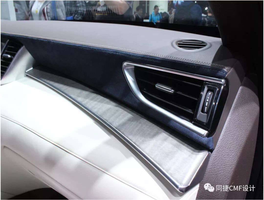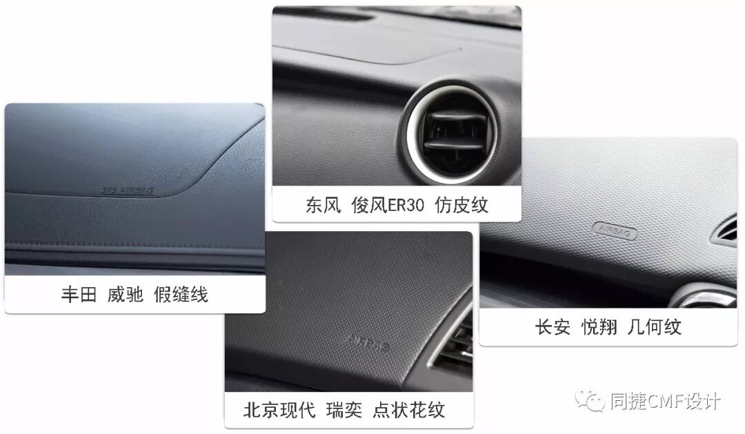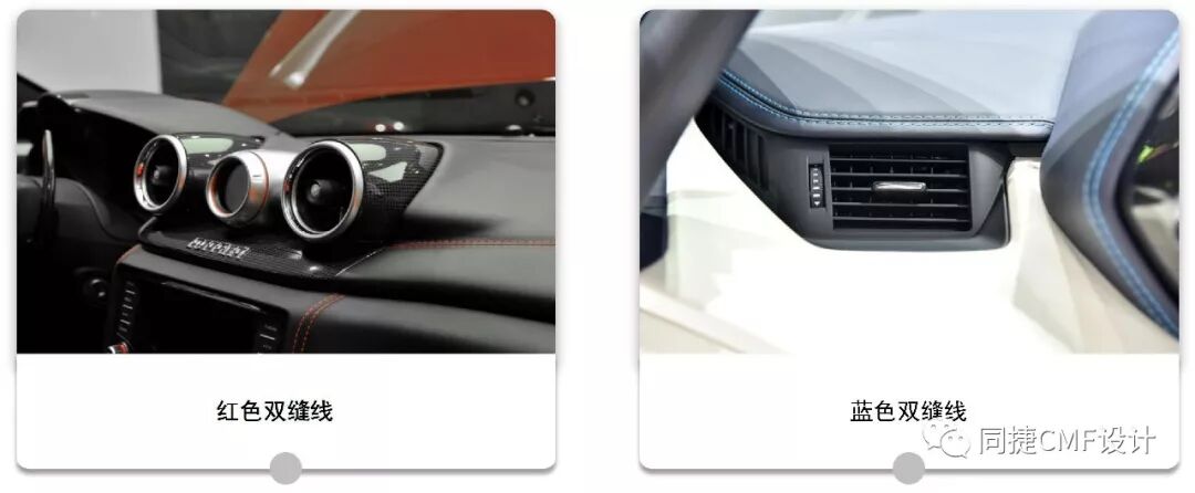 在表面的处理上——通过腐蚀纹理主要是仿皮纹,赋予硬质仪表板的皮质感,降低塑料感,加上假缝线的使用更逼真达到了皮革包覆效果。