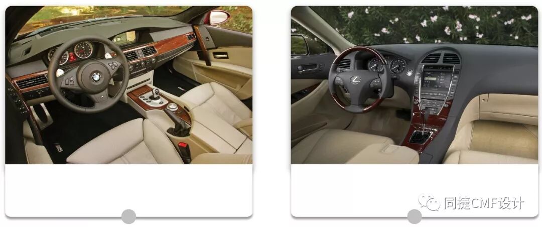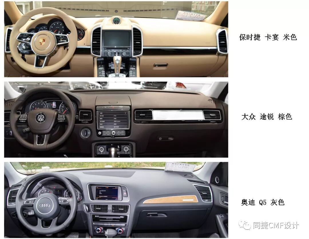 在颜色的选用上——考虑到仪表板的使用环境及硬质塑料的耐老化性、耐光照性等性能,综合内饰造型的需要,有全色、中部分色、上下分色几种形式。仪表板上部多为黑色,极少数选用深棕的方案;分色区域为表现不同的风格,可选用灰、棕、米、白等。