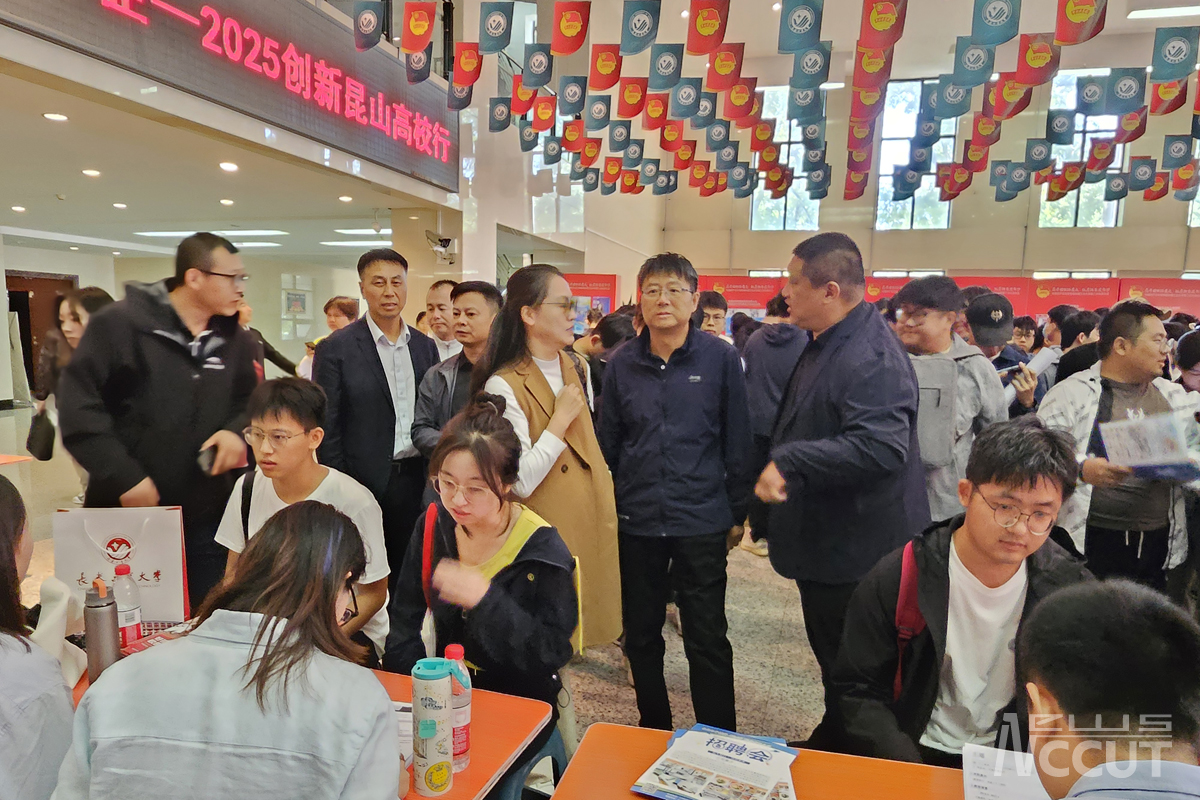 9月17日,由昆山市人力资源市场与我校联合主办的“百校千企—2025创新昆山高校行”专场招聘会在学校南湖校区大学生活动中心举行。吉林省政府驻上海办事处人才合作处处长姜巍,昆山人力资源市场党委委员庄春龙、管委会人才资信科科长荣琴、集团有限公司总经理华成、集团有限公司配置事业群经理王晓鹏及18家优质企业招聘专员来校招贤纳士。校党委副书记吴成章出席活动,招生就业处相关人员及2026届毕业生共同参与此次招聘会。