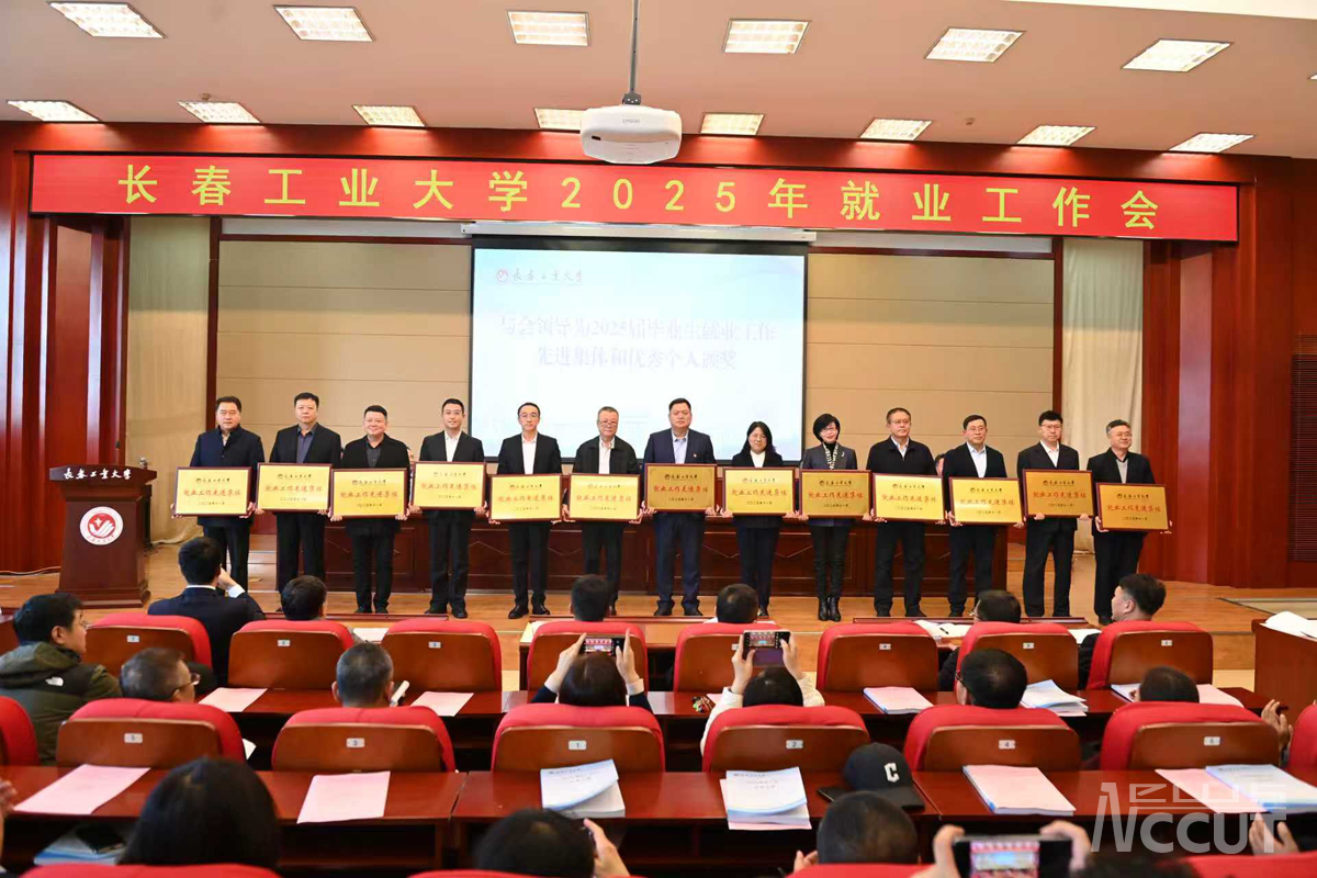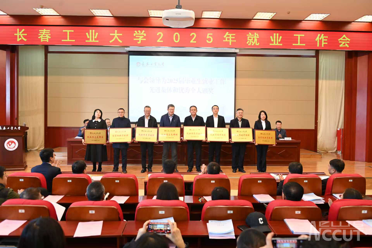 党委副书记李东玲宣读了《关于表彰2025届毕业生就业工作先进集体和先进个人的决定》。与会领导为荣获“就业工作先进集体”“就业工作单项奖”及“就业工作先进个人”称号的单位与个人颁发了奖牌与证书。