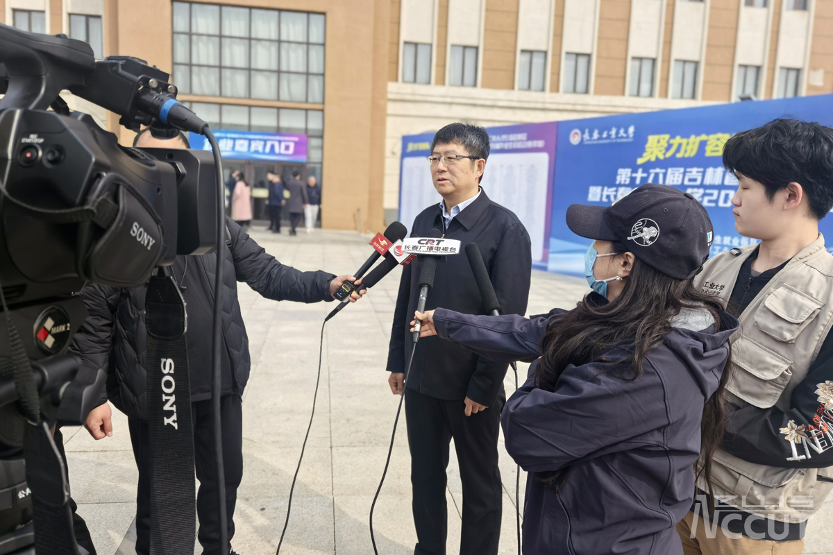 学校领导接受媒体采访介绍招聘会相关情况