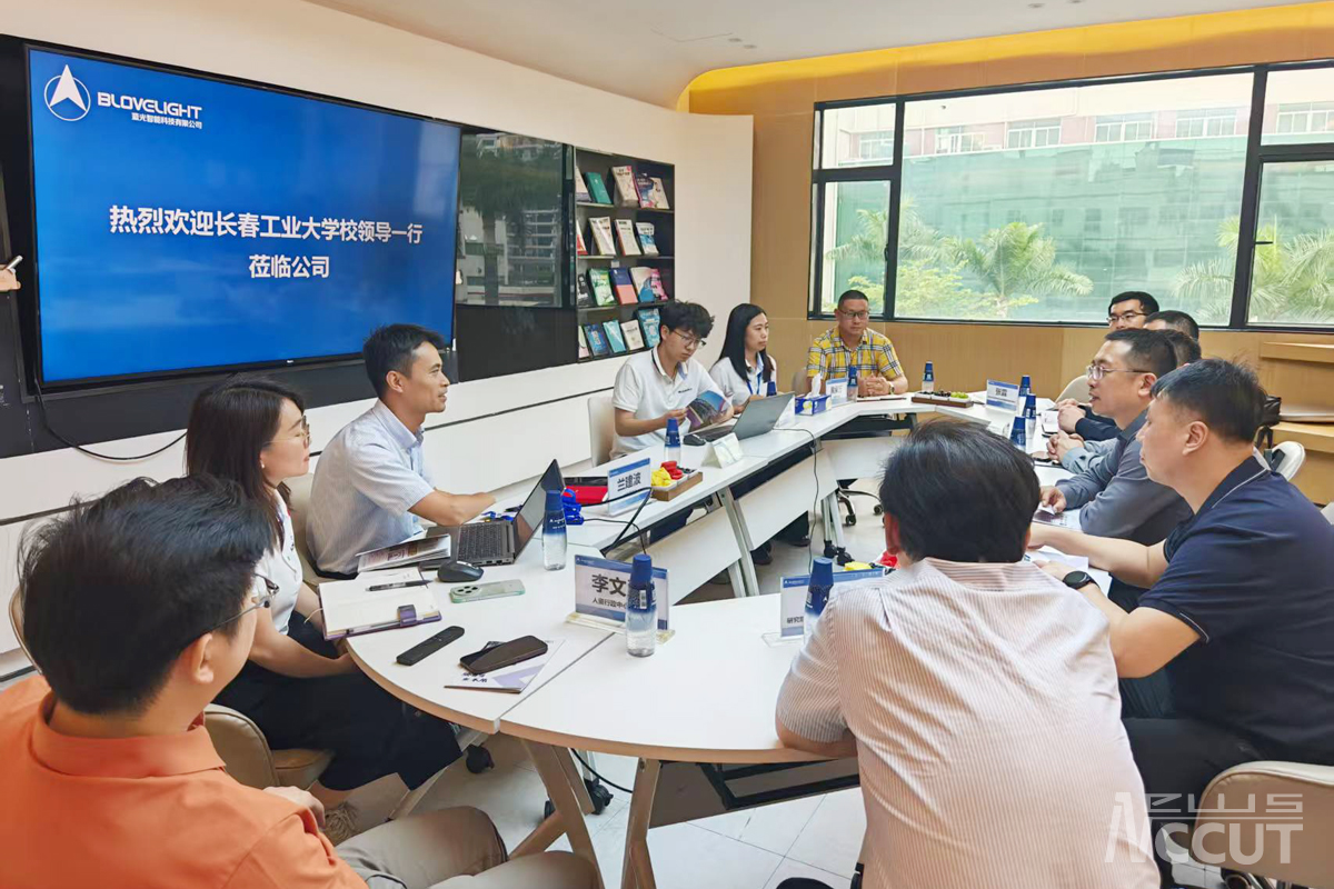 下午,付跃刚一行前往广东蓝光智能科技有限公司考察交流,深入企业实地调研,全面了解企业发展布局、技术创新成果、核心业务方向及人才岗位需求,详细察看生产流程与研发环境。随后,与公司董事长兰建波及企业相关负责人围绕人才培养、毕业生精准输送、实习就业一体化等内容进行座谈交流,就拓宽就业渠道、深化产教融合达成一致意见。
